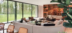 El tamaño del terreno permitió proponer volúmenes que estén despegados de los lineros para así lograr vistas con fondo de naturaleza en trescientos sesenta grados.