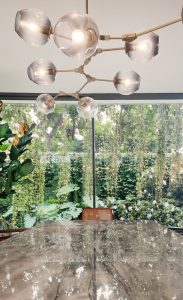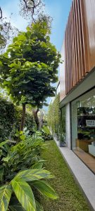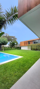 En conjunto con la arquitecta Claudia Casabonne, el proyecto de esta casa se desarrolló en un lote de forma trapezoidal en esquina de mil doscientos metros cuadrados en San Isidro, Lima.