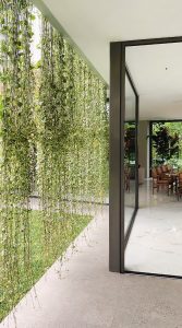 El techo de la terraza está formado por el piso del segundo nivel. El cuarto de juegos de los niños, revestido en piedra, tiene vistas al jardín trasero para mayor privacidad y libertad. Todos los dormitorios tienen vistas al jardín, creando un universo propio.