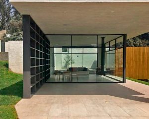 El pedido de los clientes de un librero en el área social de la casa, sumado a la necesidad de transparencia para gozar visualmente del jardín, dio la idea al estudio de hacer de ese elemento el protagonista del proyecto, repartiendo así lo que hubiera sido una columna, en varios parantes estructurales repartiendo así el peso del techo y formando un librero estructural que recorre el espacio desde el interior hasta la terraza.